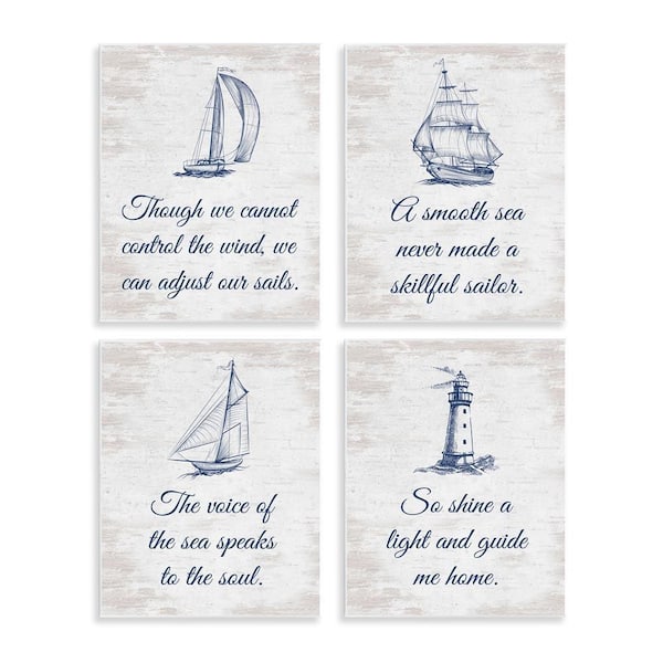 Timeless Nautical Phrases by Lettered and Lined 4 Pieces Unframed Coastal Graphic Art Print 14 in. x 11 in.