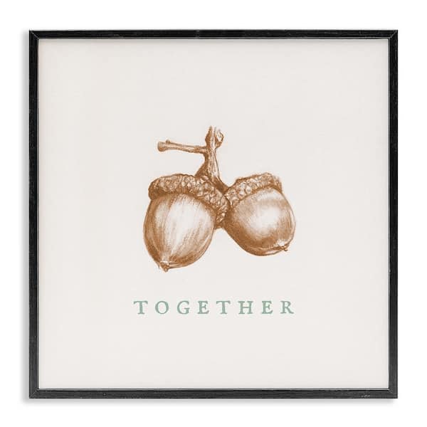 Together Funny Vintage Acorn Pair Tree Nut by Daphne Polselli Black Framed Graphic Typography Art Print 17 in. x 17 in.