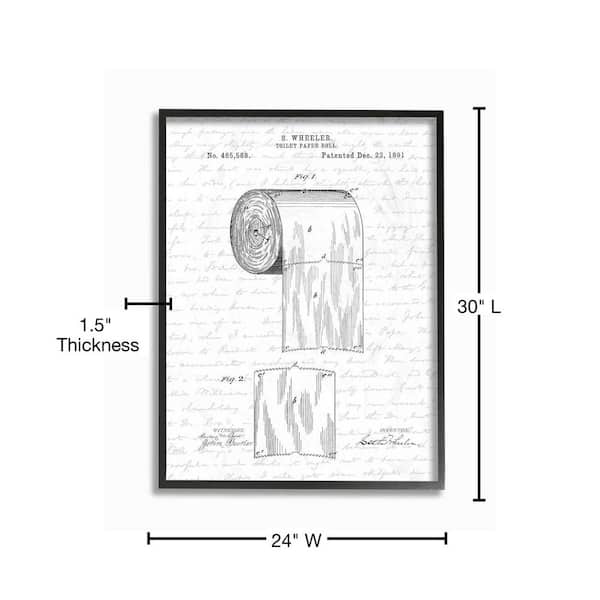 "Toilet Paper Roll Patent Black And White Bathroom Design "Lettered and Lined Framed Abstract Wall Art 30 in. x 24 in.