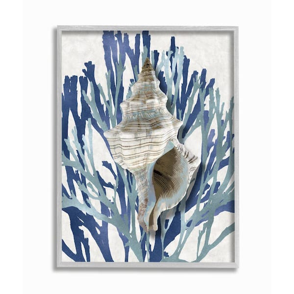 "Tower Shell Coral Blue Beach Design" by Caroline Kelly Framed Nature Wall Art Print 11 in. x 14 in.