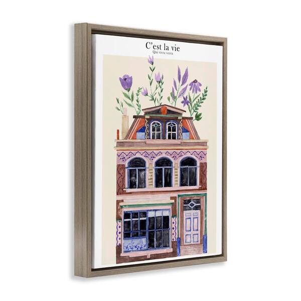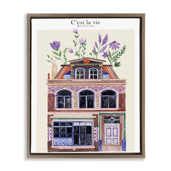 Town Architecture with Blooms by Melissa Wang Brown Floater Frame Architecture Graphic Art Print 21 in. x 17 in.