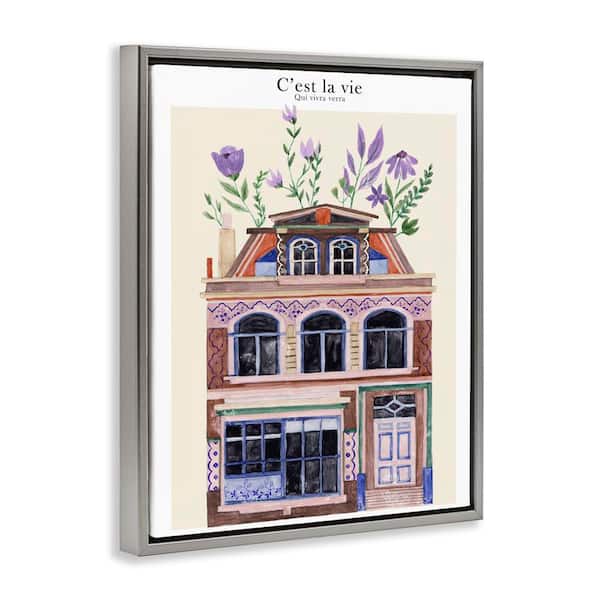 Town Architecture with Blooms by Melissa Wang Gray Floater Frame Architecture Graphic Art Print 31 in. x 25 in.