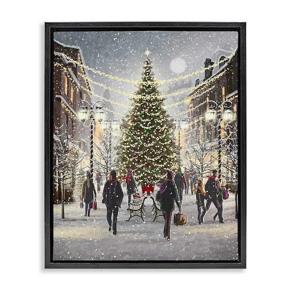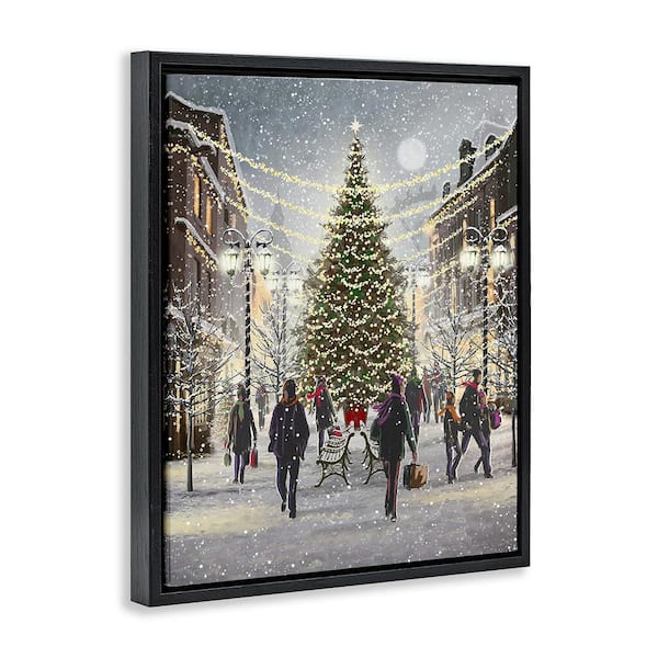 Town Christmas Tree by Pip Wilson 1-Piece Floater Frame Graphic Print People Poster Art Print 21 in. x 17 in.