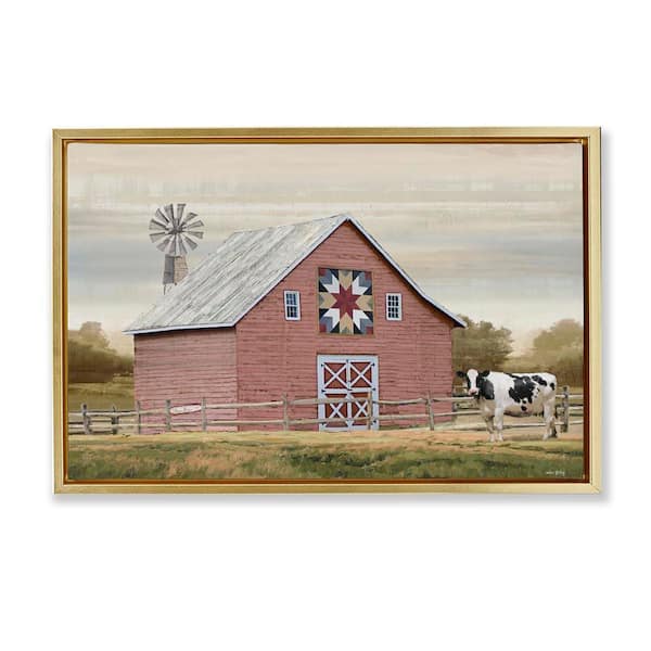 Traditional Barn & Windmill by Amber Sterling Gold Floater Frame Nature Graphic Art Print 21 in. x 31 in.