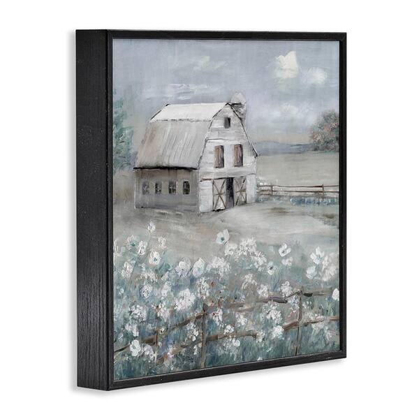 Traditional Barn and Meadow by Sally Swatland Black Framed Nature Giclee Art Print 24 in. x 24 in.