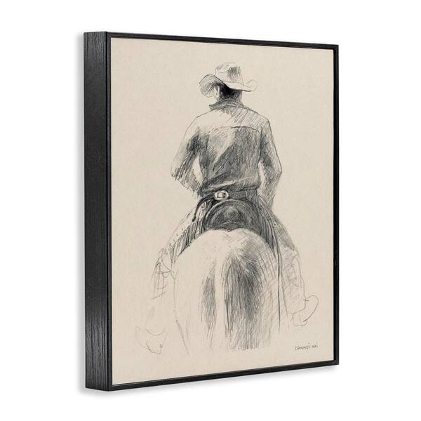 Traditional Drawing of Cowboy by Danhui Nai Black Framed People Giclee Art Print 20 in. x 16 in.