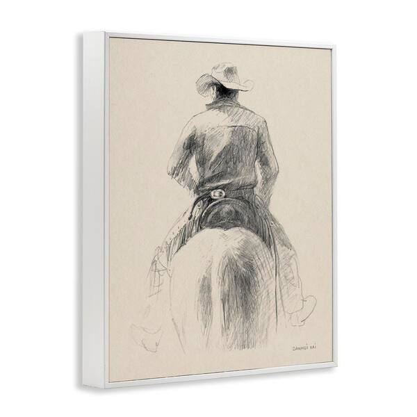 Traditional Drawing of Cowboy by Danhui Nai White Framed People Giclee Art Print 30 in. x 24 in.