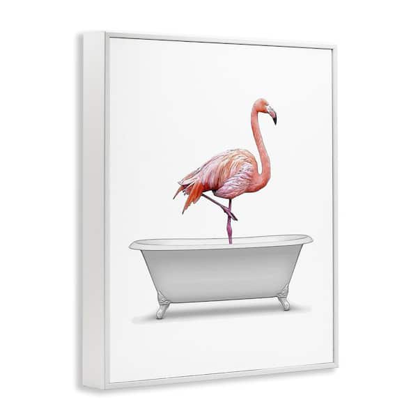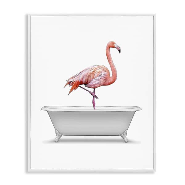 Traditional Flamingo in Bath by Annalisa Latella White Framed Animal Giclee Art Print 14 in. x 11 in.