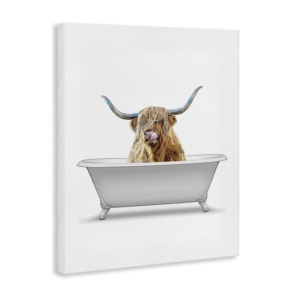 Traditional Longhorn in Bath by Annalisa Latella Unframed Animal Graphic Art Print 30 in. x 24 in.