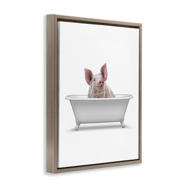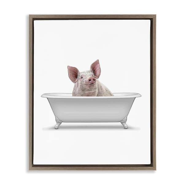 Traditional Pig in Bath by Annalisa Latella Brown Floater Frame Animal Graphic Art Print 31 in. x 25 in.