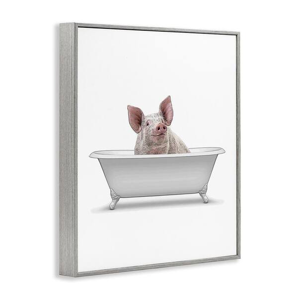 Traditional Pig in Bath by Annalisa Latella Gray Framed Animal Giclee Art Print 14 in. x 11 in.