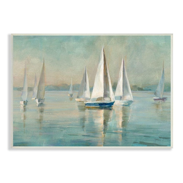 "Traditional Sailboats Water Lake Nautical Painting" by Danhui Nai Unframed Nature Wood Wall Art Print 13 in. x 19 in.