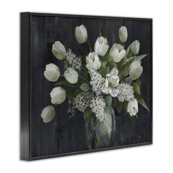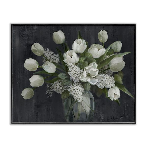 Traditional Tulips on Gray by Nan Black Framed Nature Giclee Art Print 11 in. x 14 in.