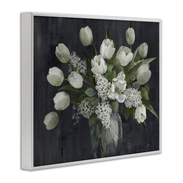 Traditional Tulips on Gray by Nan White Framed Nature Giclee Art Print 24 in. x 30 in.