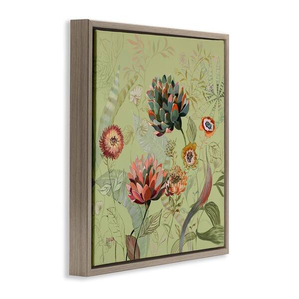 Traditional Vintage Foliage by Dusza Brown Floater Frame Nature Graphic Art Print 18 in. x 18 in.