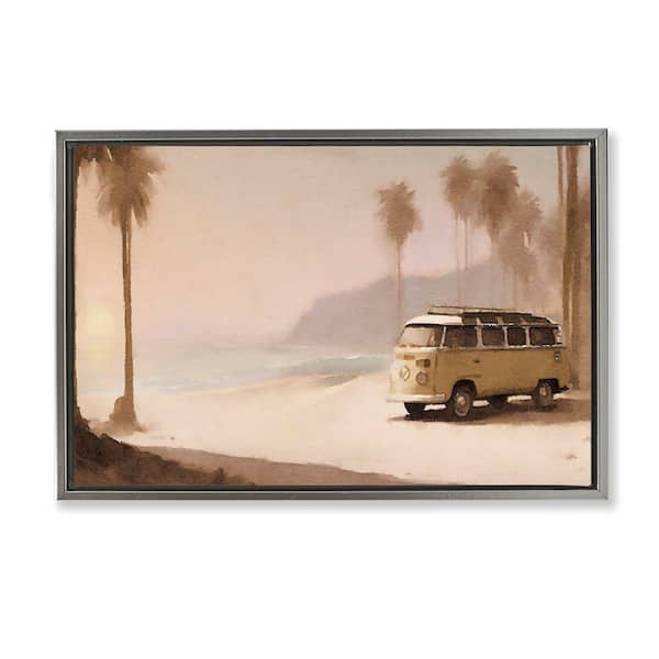 Tranquil Beach Day by Noah Bay Gray Floater Frame Coastal Graphic Art Print 21 in. x 31 in.