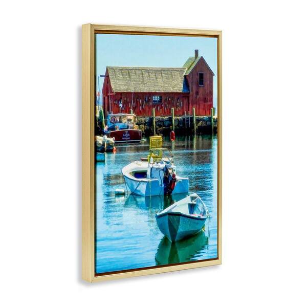 Tranquil Boat Harbor by Graffi tee Studios Gold Floater Frame Nature Graphic Art Print 31 in. x 21 in.
