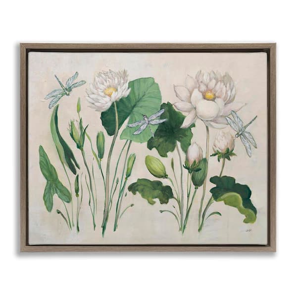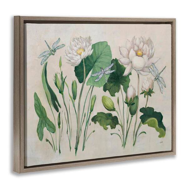 Tranquil Lilies Vintage by Julia Purinton Brown Floater Frame Nature Graphic Art Print 17 in. x 21 in.