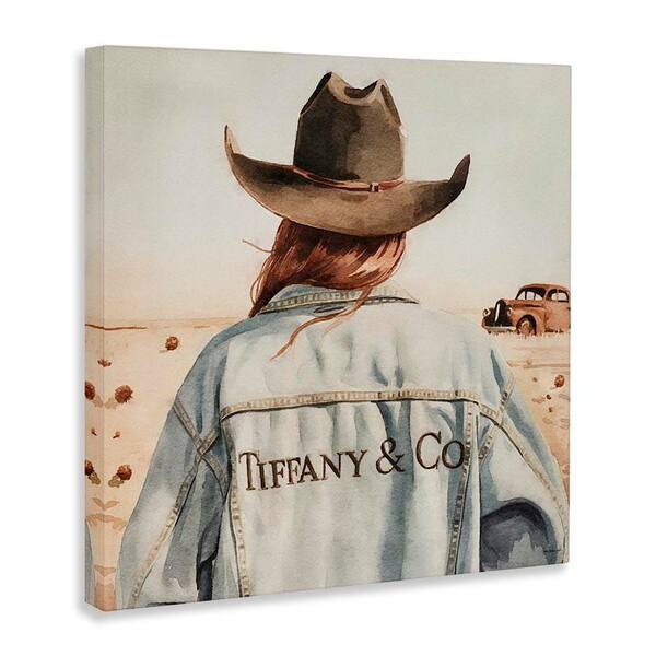 Trendy Brunette Cowgirl by Amanda Greenwood Unframed People Graphic Art Print 24 in. x 24 in.