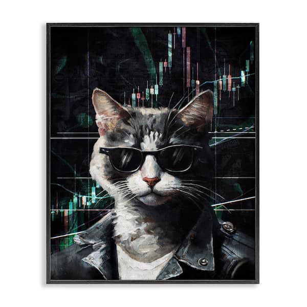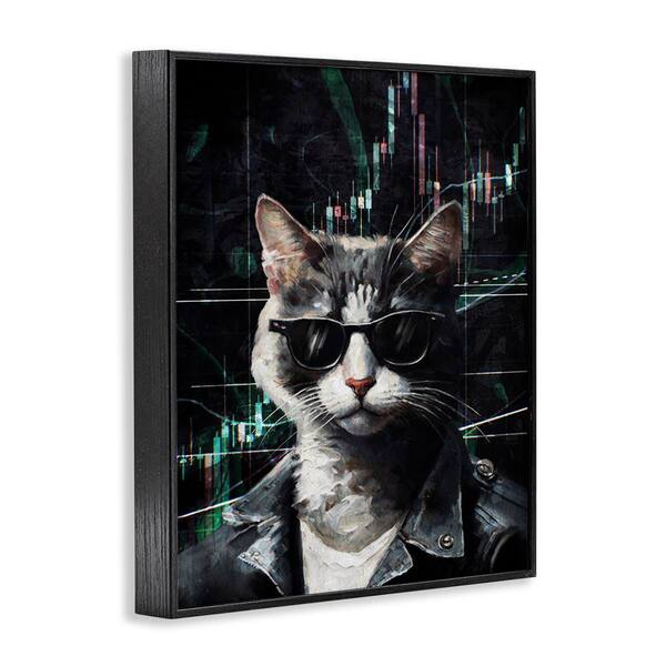 Trendy Cat Sunglasses by Svetlana Aleynikova Black Framed Animal Giclee Art Print 20 in. x 16 in.