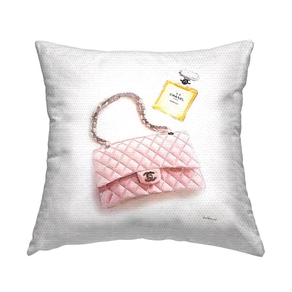 Trendy Pink Glam Fashion Purse Perfume Pink Square Outdoor Throw Pillow