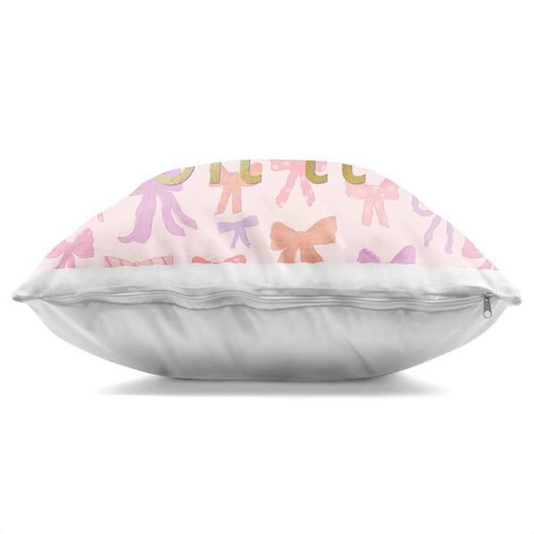 Trendy Put A Bow On It Pink Abstract Polyester 18 in. X 18 in. Throw Pillow