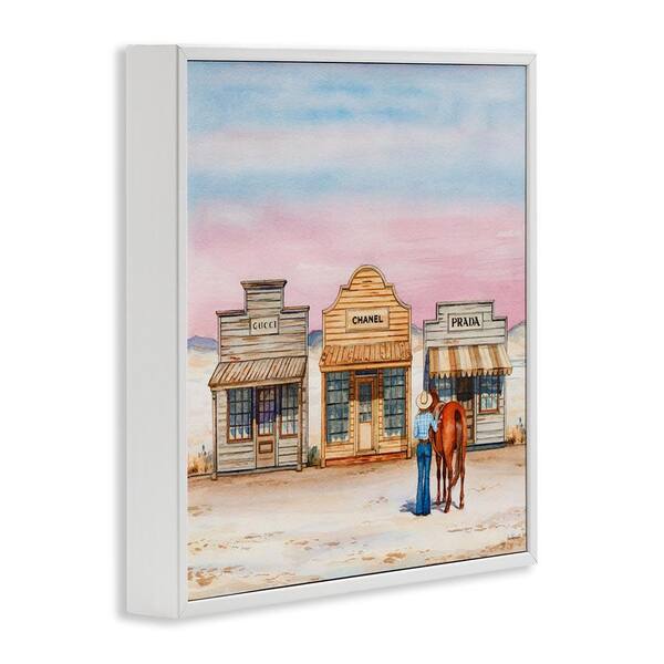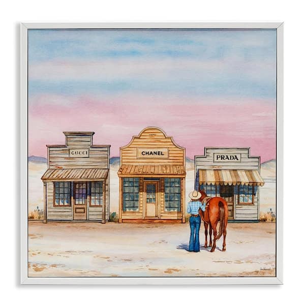 Trendy Saloon Shops Cowgirl by Amanda Greenwood White Framed Nature Giclee Art Print 24 in. x 24 in.