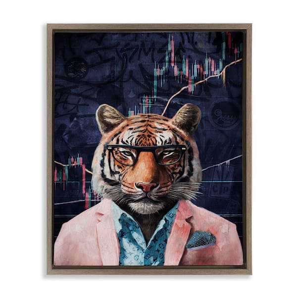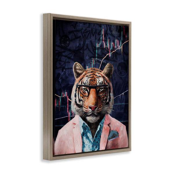 Trendy Tiger on Abstract by Svetlana Aleynikova Brown Floater Frame Animal Graphic Art Print 21 in. x 17 in.