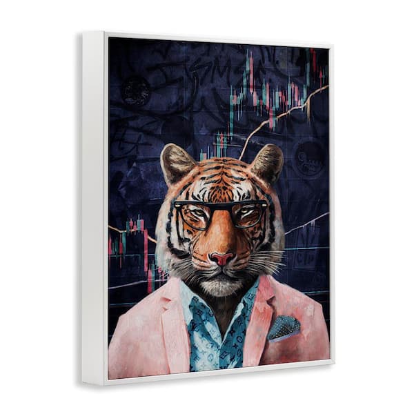 Trendy Tiger on Abstract by Svetlana Aleynikova White Framed Animal Giclee Art Print 30 in. x 24 in.