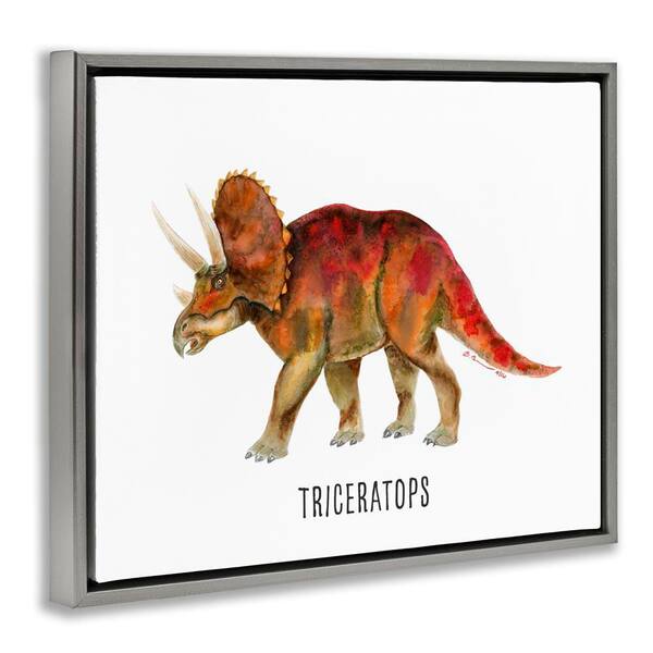 Triceratops Dinosaur Learning by Brett Blumenthal Gray Floater Frame Animal Graphic Art Print 25 in. x 31 in.
