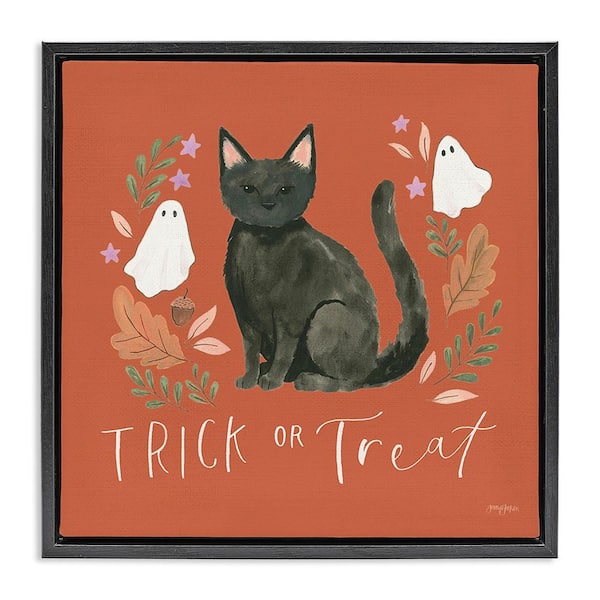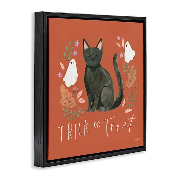 Trick Or Treat Cat by Jenaya Jackson 1 Piece Floater Frame Graphic Print Typography Poster Art Print 18 in. x 18 in.
