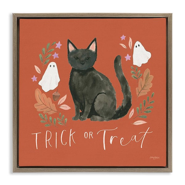 Trick Or Treat Cat by Jenaya Jackson 1 Piece Floater Frame Graphic Print Typography Poster Art Print 18 in. x 18 in.