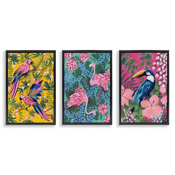 Tropical Birds & Botanicals by Yvette St. Amant 3 Pieces Black Floater Frame Animal Graphic Art Print 31 in. x 21 in.