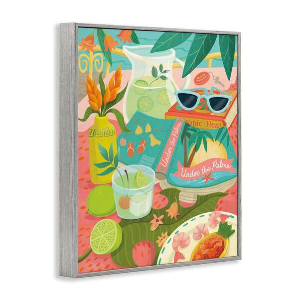 Tropical Drinks on Beach by Laura Watson Gray Framed Food Giclee Art Print 14 in. x 11 in.