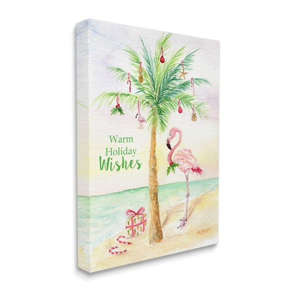 Tropical Flamingo Christmas Nautical Palm Tree by Melissa Hyatt LLC Unframed Print Abstract Wall Art 30 in. x 40 in.