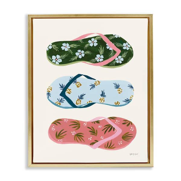 Tropical Flip Flops by Yvette St. Amant Gold Floater Frame Coastal Graphic Art Print 31 in. x 25 in.