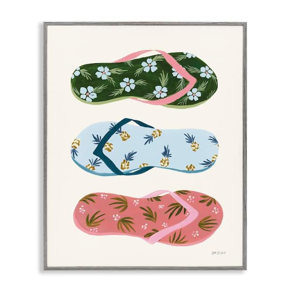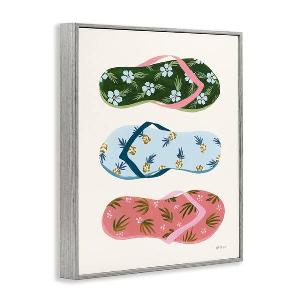 Tropical Flip Flops by Yvette St. Amant Gray Framed Coastal Giclee Art Print 20 in. x 16 in.