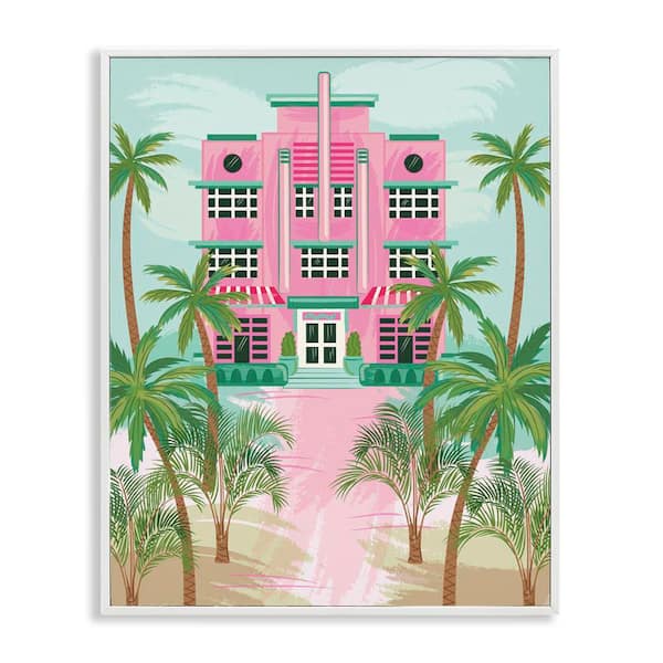 Tropical Palm Hotel by Lisa Perry Whitebutton White Framed Coastal Giclee Art Print 30 in. x 24 in.