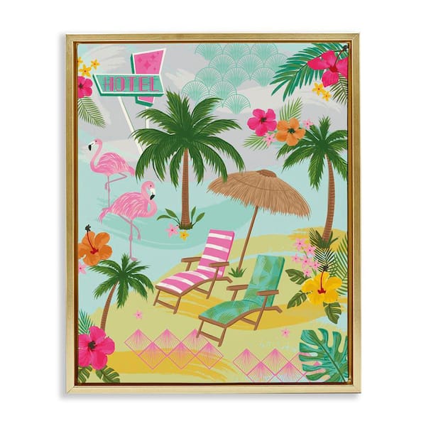 Tropical Palms Resort by Lisa Perry Whitebutton Gold Floater Frame Coastal Graphic Art Print 31 in. x 25 in.