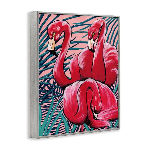 Tropical Paradise Flamingos by Yvette St. Amant Gray Framed Animal Giclee Art Print 14 in. x 11 in.