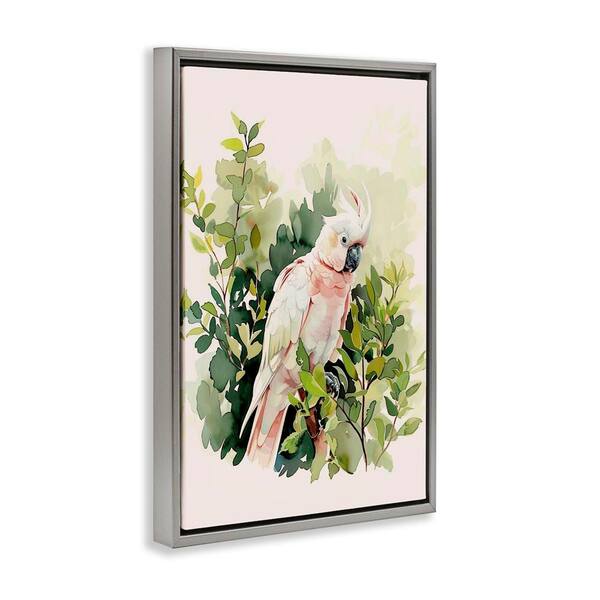 Tropical Parrot Cockatoo by LSR Design Studio Gray Floater Frame Animal Graphic Art Print 31 in. x 21 in.