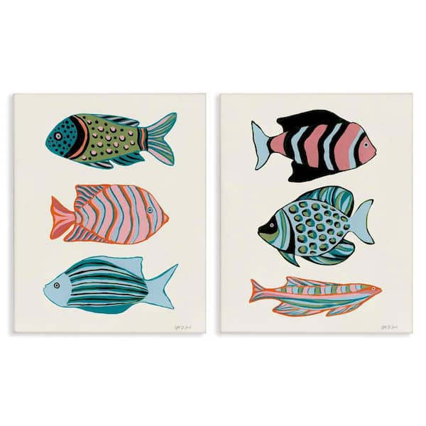 Tropical Pastels Fish by Yvette St. Amant 2 Pieces Unframed Animal Graphic Art Print 20 in. x 16 in.