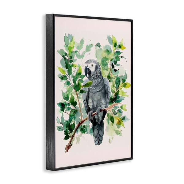 Tropical Perched Parrot by LSR Design Studio Black Framed Animal Giclee Art Print 30 in. x 20 in.