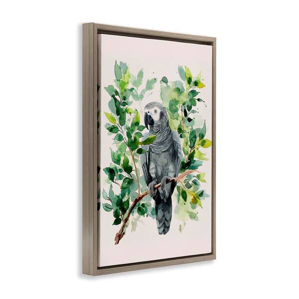 Tropical Perched Parrot by LSR Design Studio Brown Floater Frame Animal Graphic Art Print 31 in. x 21 in.