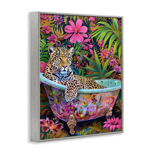 Tropical Rainforest Leopard Tub by LSR Design Studio Gray Framed Animal Giclee Art Print 30 in. x 24 in.