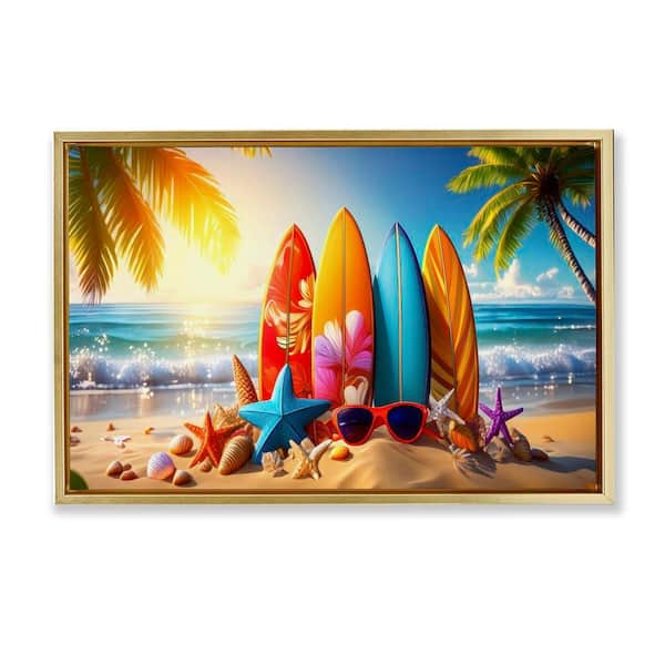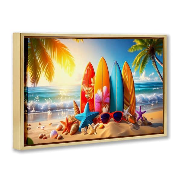 Tropical Surf and Turf by Alina Georgescu Gold Floater Frame Coastal Graphic Art Print 17 in. x 25 in.
