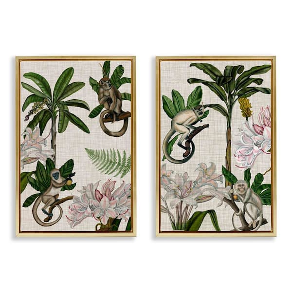 Tropical Trees & Monkeys by Naomi McCavitt 2 Pieces Gold Floater Frame Nature Graphic Art Print 31 in. x 21 in.