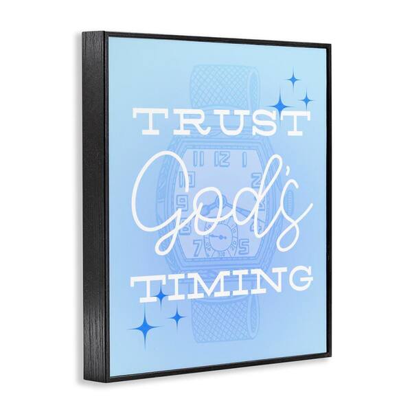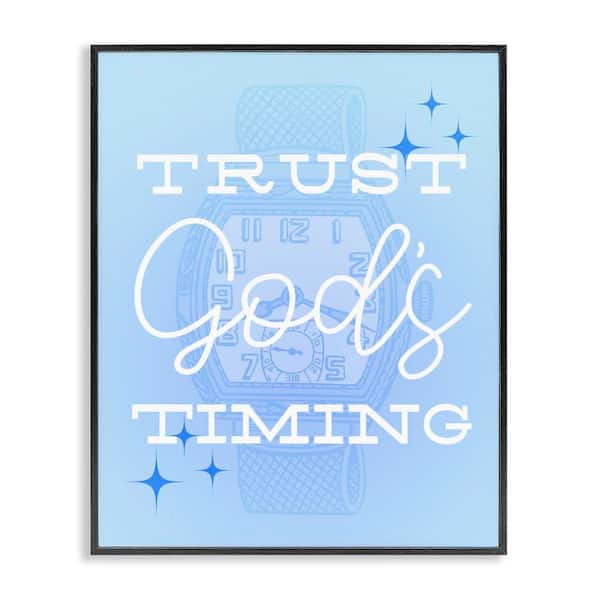 Trust Gods Timing Blue by Daphne Polselli Black Framed Religious Giclee Art Print 20 in. x 16 in.