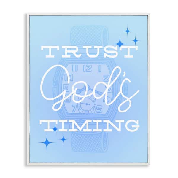 Trust Gods Timing Blue by Daphne Polselli White Framed Religious Giclee Art Print 30 in. x 24 in.
