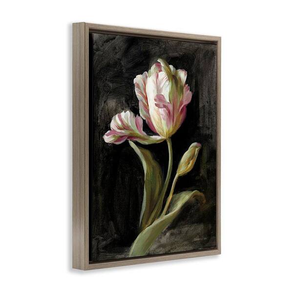 Tulip on Black by Danhui Nai Brown Floater Frame Nature Graphic Art Print 21 in. x 17 in.
